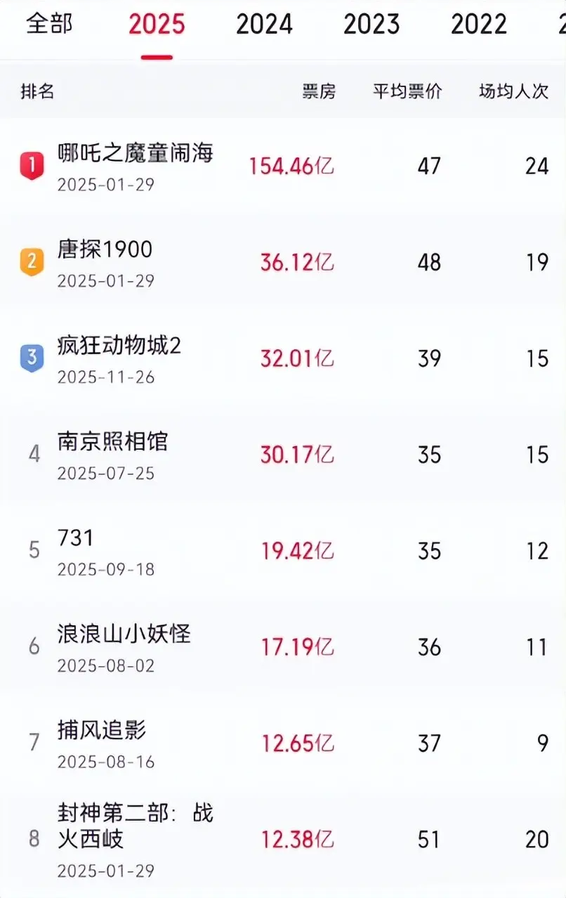 2025年内地票房前8:陈思诚和成龙上榜,动物城2第3,冠军杀疯了